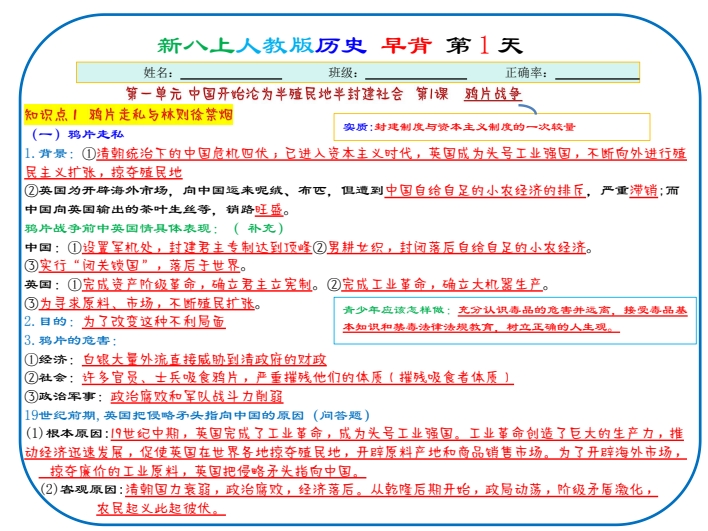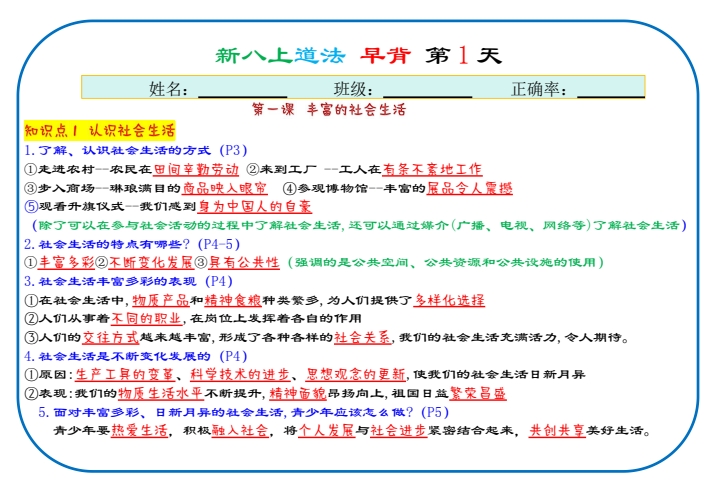 花99,从专业老师那里购买的2026版初中《小四门早读晚背》8年级上册(小纸条) |